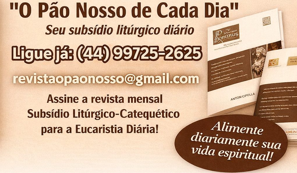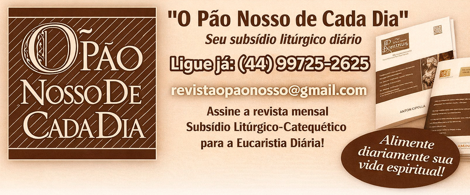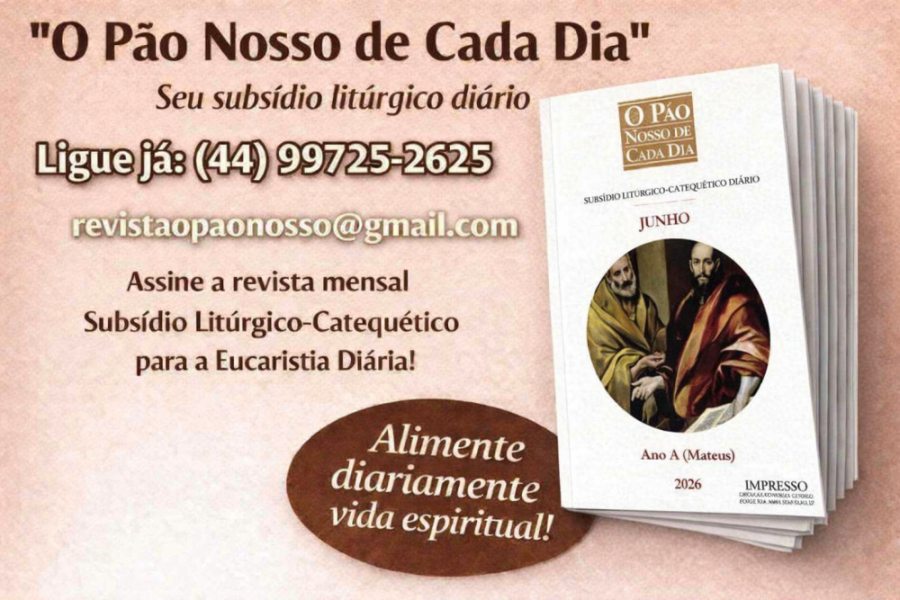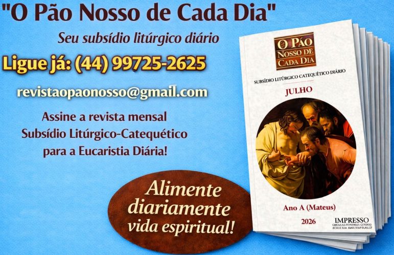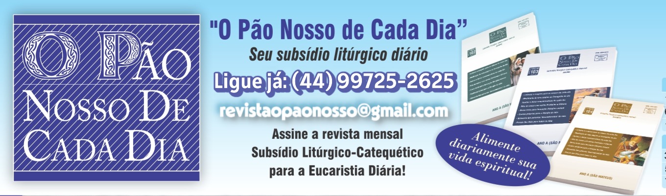 Convidamos você a assinar a revista Litúrgica “O Pão Nosso de Cada Dia”. É uma ajuda para você e sua comunidade entenderem e vivenciarem a Liturgia de cada dia, particularmente a Liturgia da Palavra..